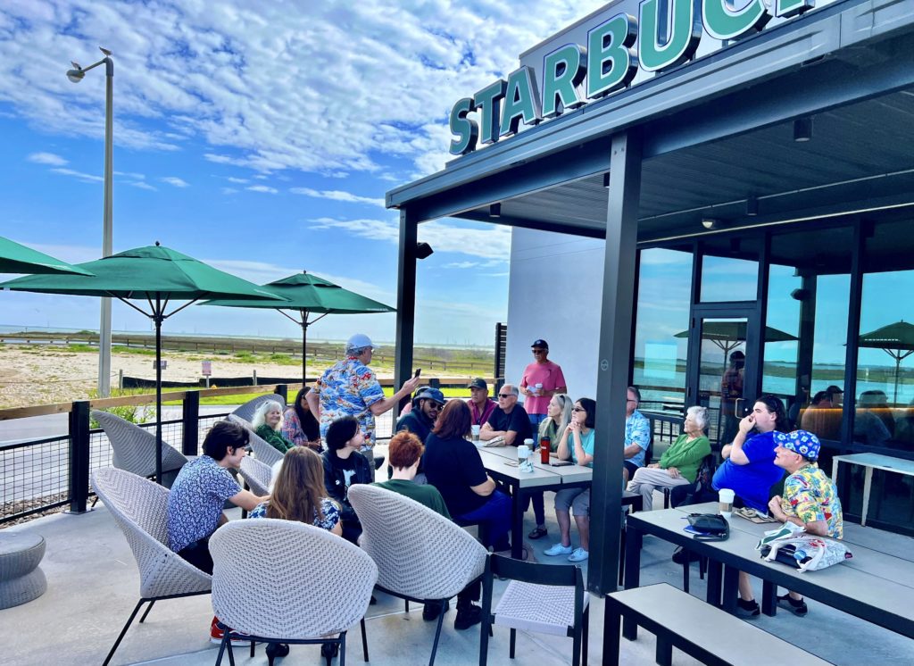Great turnout today at Starbucks on the Island. Our weekly Meetings take place at 10am every Monday. All Dems and like-minded folks are welcome to attend. Thanks to Tom Whitehurst, Ashley Blentlinger and kids, Connor Rice, Jen Gracia, Luis Saucedo, Joseph Ramirez, Lisa Hernandez, Richard Hafemeister, Armon Alex and Mary Alice Wiechman for coming from over the bridge (OTB) to join us!